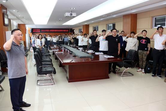 开班仪式上,杨春涛和史梅向2022年规范化培训的6名优秀学员颁发了证书,优秀学员代表范辉和新教师代表王珏分别作了交流和表态发言,所有新入职教师一起进行了庄严的入职宣誓。