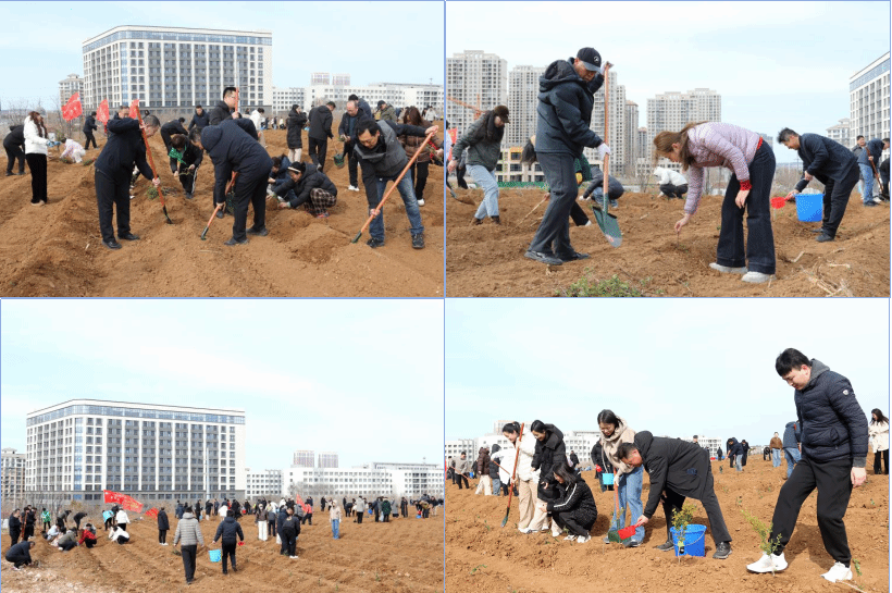 种植活动在护理康养实训楼南侧地块开展。来自机关和中药系的四百余名师生携手并肩、躬身劳作。劳动现场分工明确、气氛热烈、秩序井然。老师们示范引领、同学们积极投入,大家精准测距、规范分苗、挥锹挖坑、扶正幼苗、培土压实、提桶浇灌……春日微风下,忙碌的身影与嫩绿的幼苗交相辉映,处处洋溢着昂扬向上的热情与团结奋进的风貌。经过近2个小时的劳作,1万株金银花幼苗在30亩种植区整齐挺立。